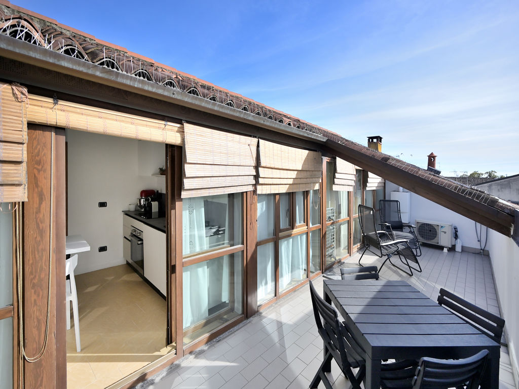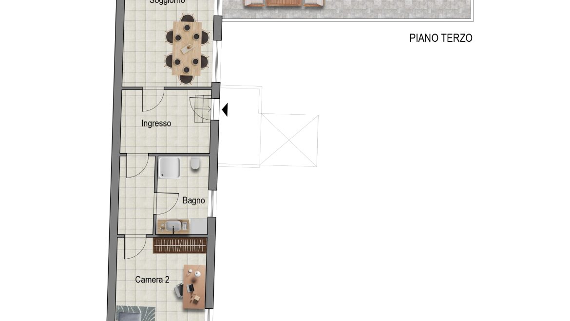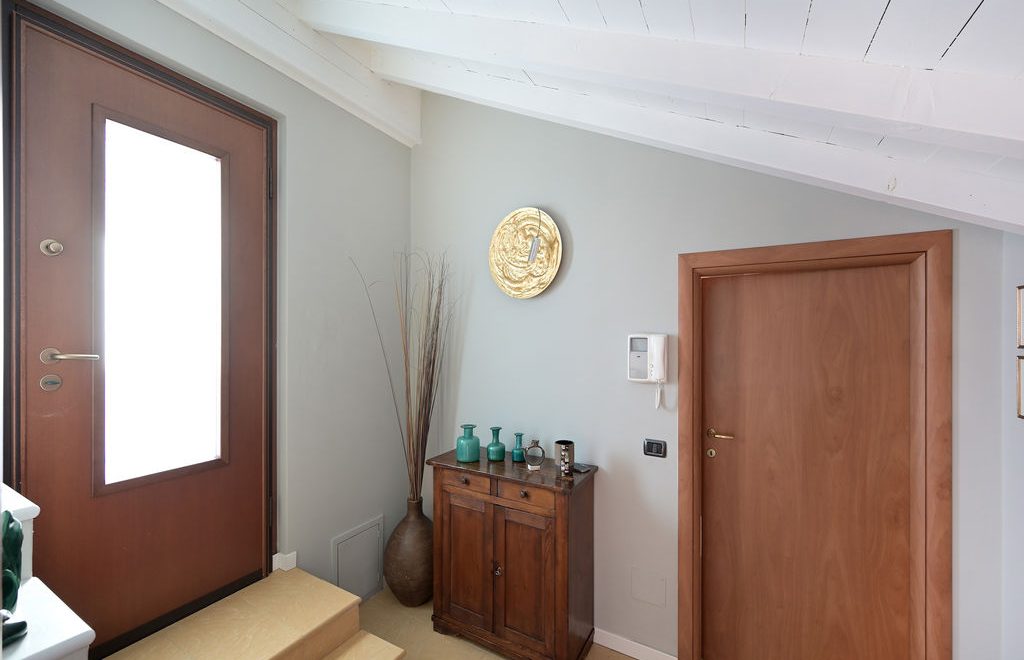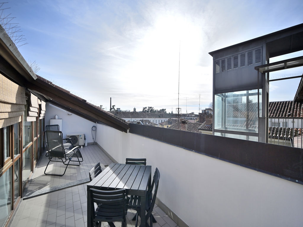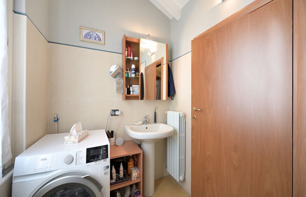 L’elemento scenografico di questa appartamento è sicuramente il terrazzo, molto grande, ricavato a tasca nel tetto, con affaccio sui tetti in coppi antichi del centro storico e con vista diretta verso i due campanili simbolo di Abbiategrasso.