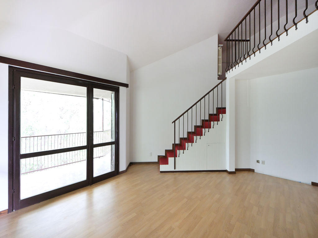 L’intera unità, che si compone di soggiorno, cucina, tre camere e due bagni più un soppalco, è interamente circondata da terrazzi e affaccia da ogni lato sul parco e sul centro della città, con viste veramente suggestive.