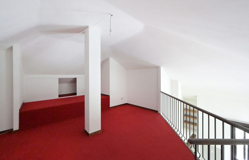 La doppia altezza del soggiorno, accoglie anche un soppalco, facilmente accessibile da una bella e comoda scala.
