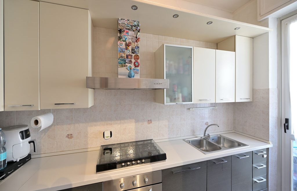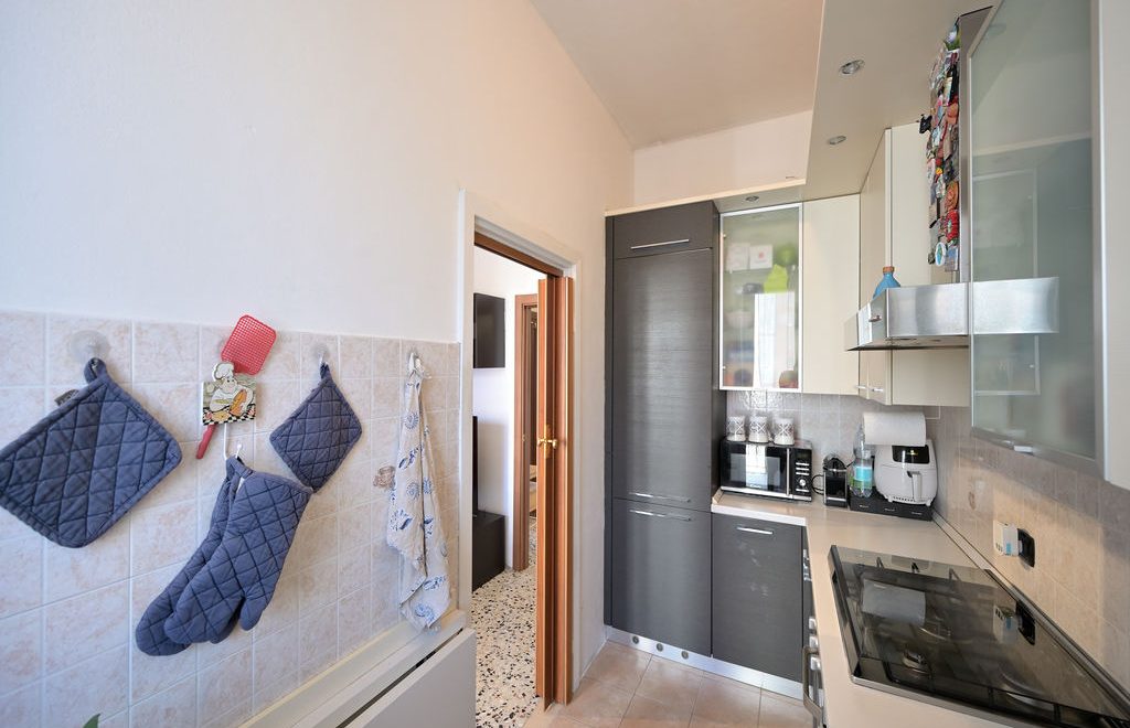 Conclude la zona giorno una cucina separata dal soggiorno anch’essa con accesso diretto al balcone del soggiorno.