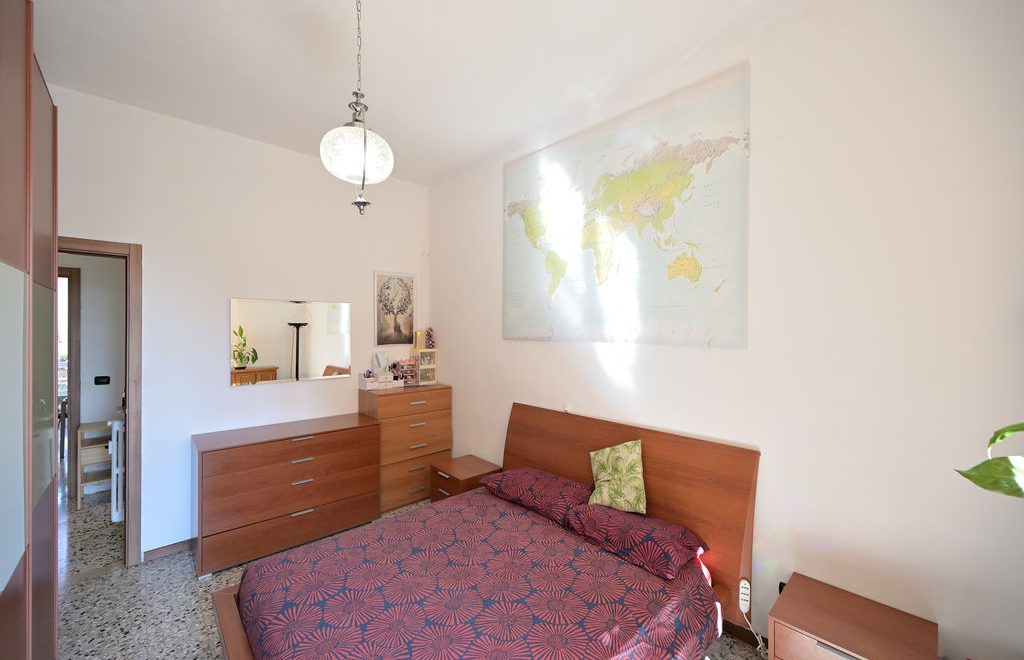 La zona notte offre due camere di dimensioni simili, entrambe matrimoniali e ad oggi una arredata con doppi letti e scrivanie.