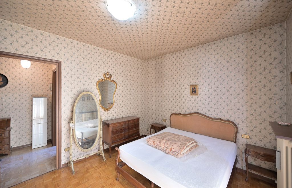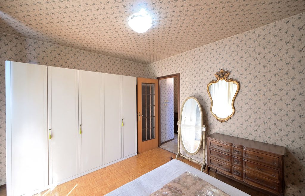 Attraverso un disimpegno si accede alla zona notte che presenta una grande camera matrimoniale con armadio ed un bagno completo di finestra e vasca da bagno; conclude la proprietà una cantina a piano terra.
