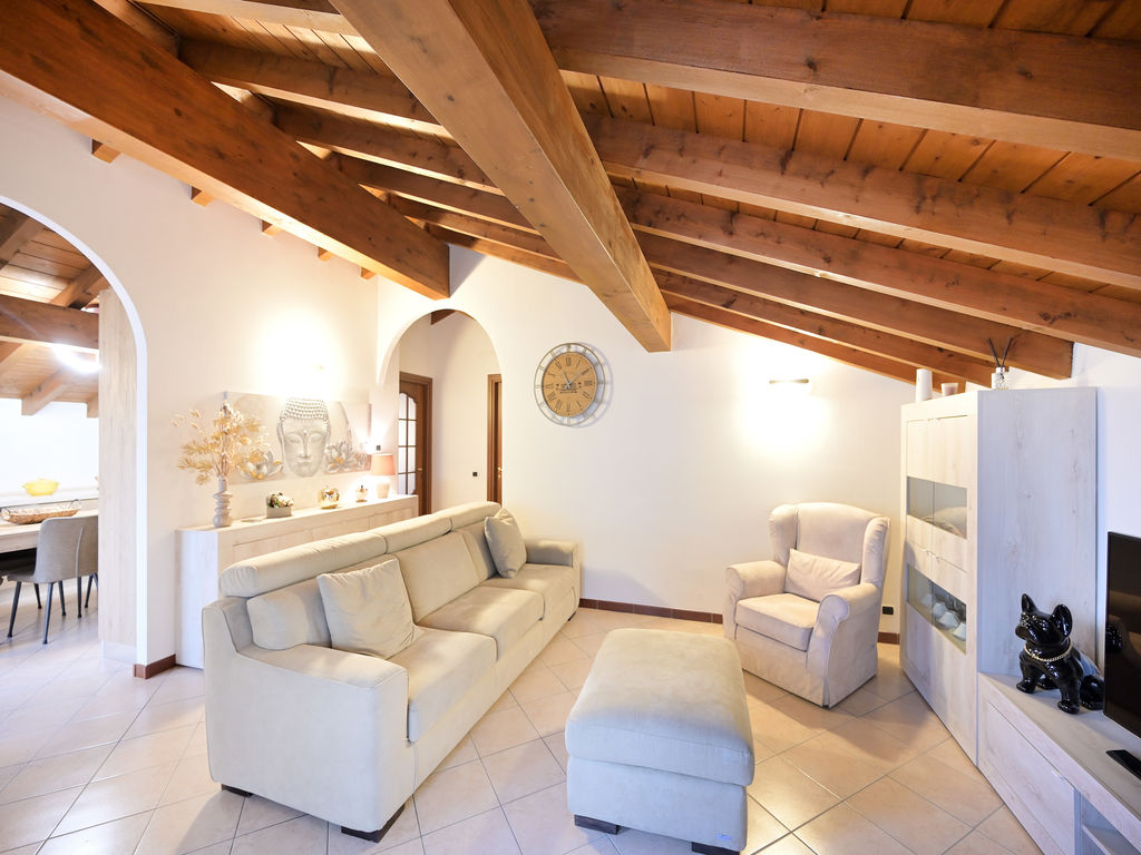 Partendo dall’alto vi è un elegante e perfettamente mantenuto appartamento con una grande zona giorno con cucina separata, due spaziose camere da letto ed un bagno con doccia e finestra, il tutto con la splendida eleganza del soffitto con travi a vista.