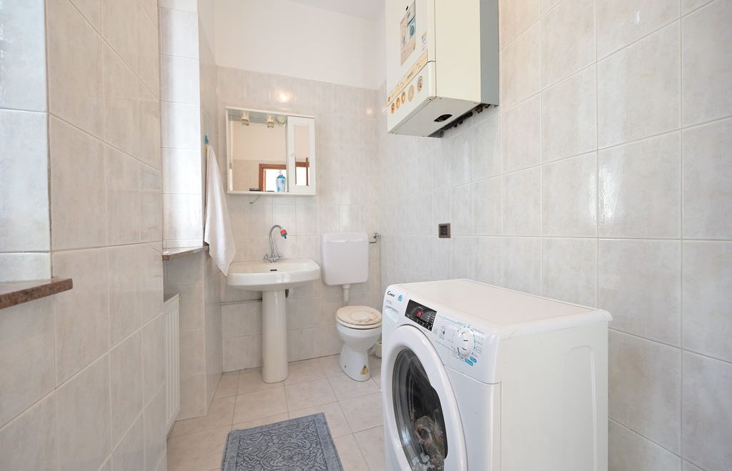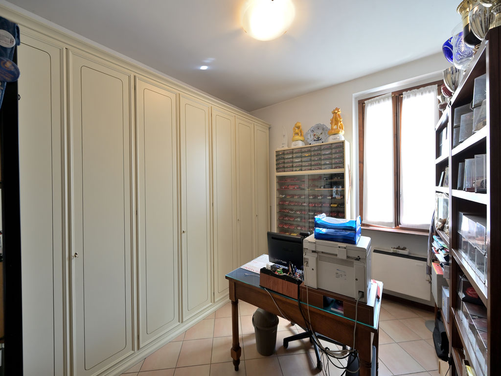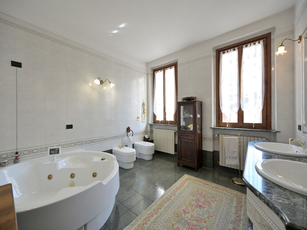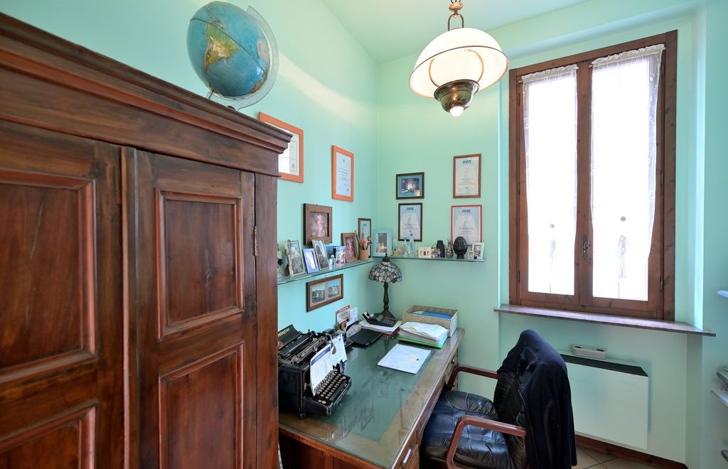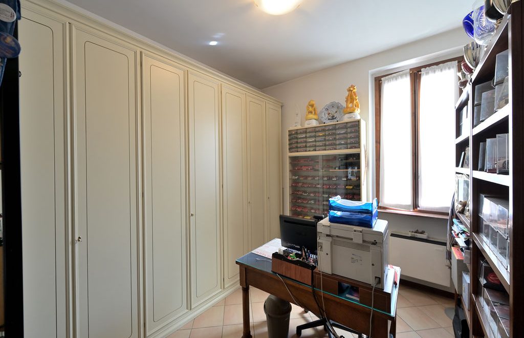L’appartamento del primo piano si presenta in ottime condizioni ed è costituito da un grande e luminoso soggiorno con camino e doppio affaccio e scala di collegamento alla mansarda, cucina abitabile dalla quale si raggiunge il terrazzo, due ampie camere da letto, una sala da bagno con doppia vasca idromassaggio angolare e doppio lavabo, un secondo bagno con doccia e un altro locale uso studio/cameretta.
