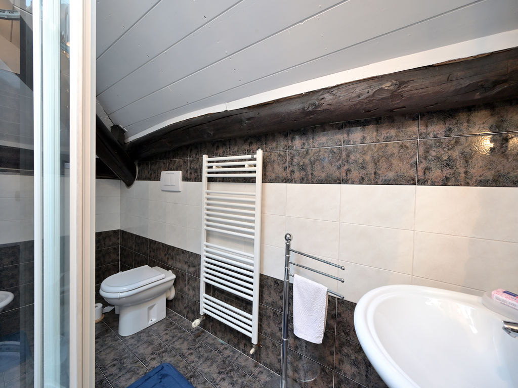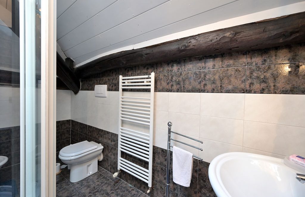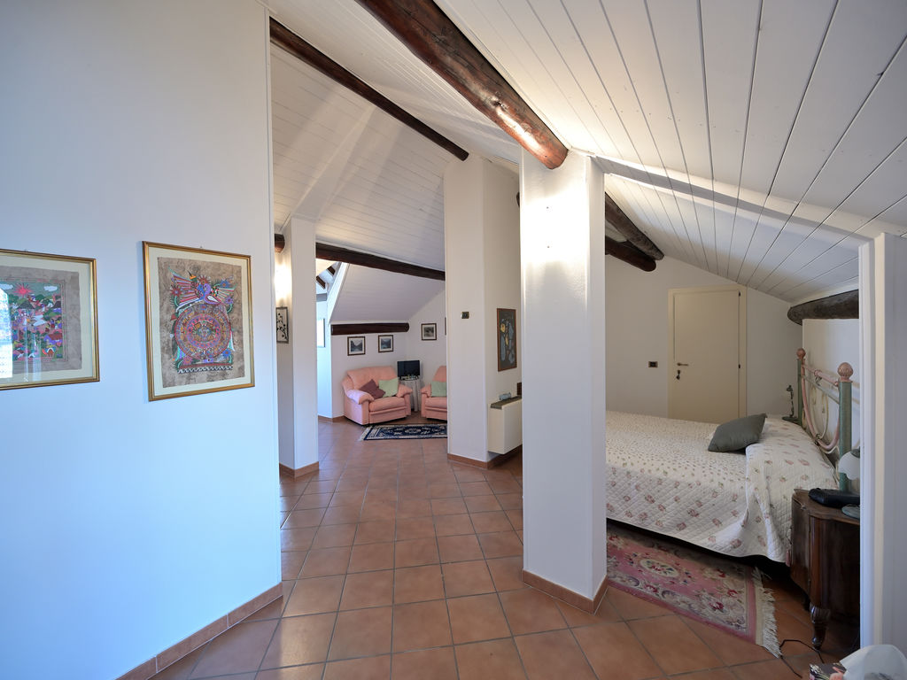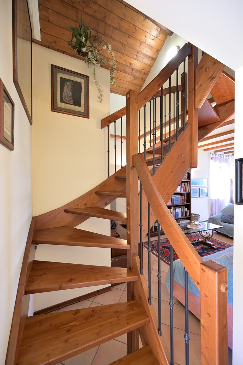 Al piano secondo invece, sottotetto con ampie altezze e con travi a vista, vi è una seconda zona notte o sala hobby con bagno.