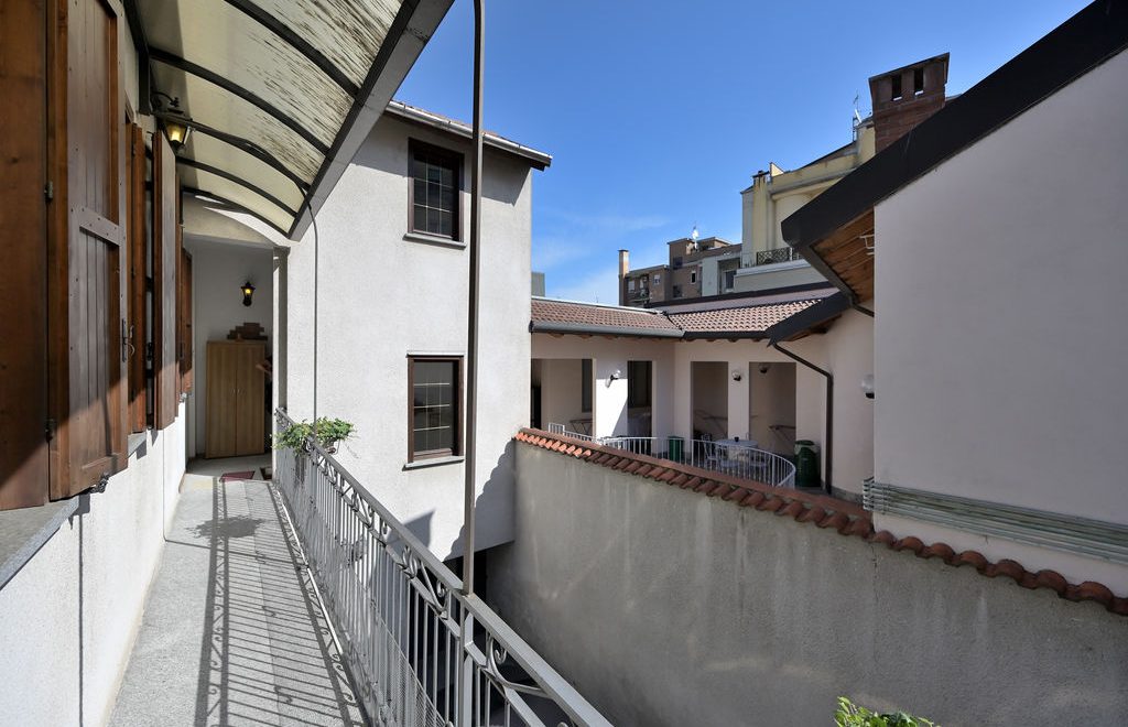 In posizione centrale a pochi passi dal centro e nelle vicinanze della Stazione, interessante proprietà con ingresso indipendente posta al piano primo con annessa mansarda oltre ad un cortile privato, capace di ospitare due auto, ed un ampio box doppio.